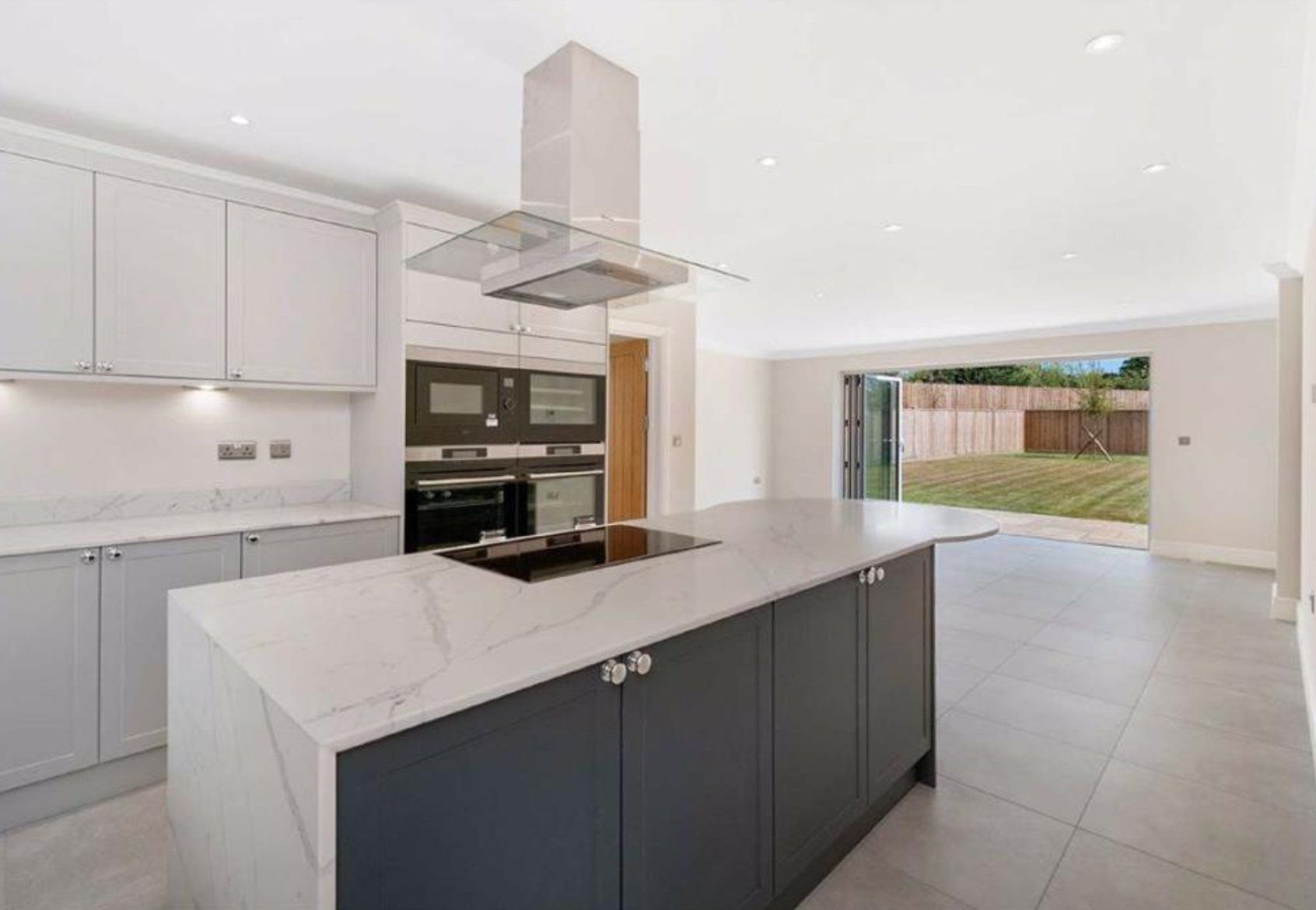 A beautiful four bed detached house, benefitting from two allocated parking spaces and a double garage. Three of the bedrooms are double, with the remaining bedroom being a well-sized single. The master bedroom is perfectly complemented by fitted wardrobes and an en-suite. High quality AEG appliances are installed in the kitchen, and the bathroom accessories are Villeroy, Boch and Grohe. Impeccably finished throughout, the property sets a new bar for quality standards.