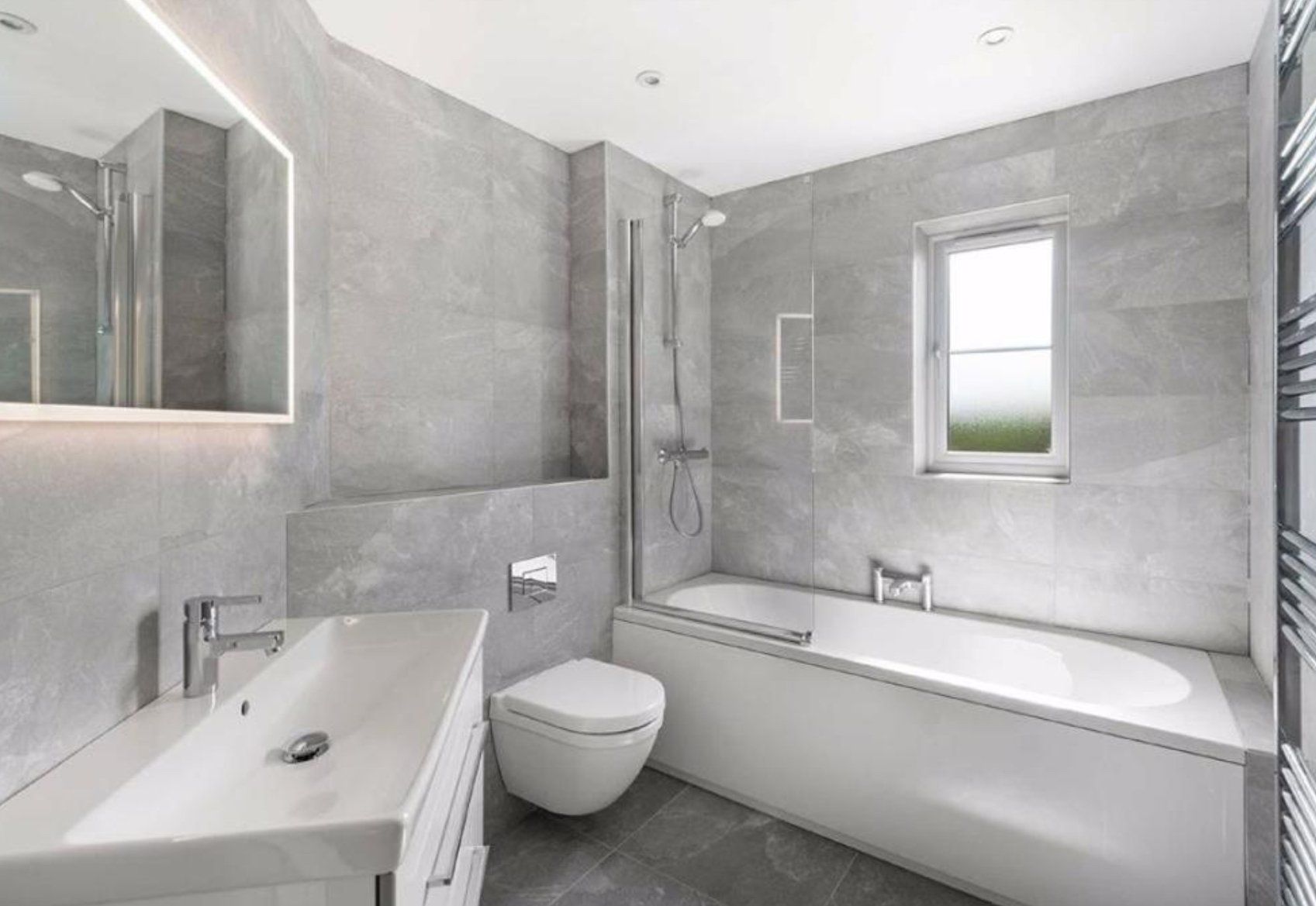 A five bedroom detached home with a double garage and allocated parking for three cars. Four of the bedrooms are double with the fifth being a single, and bedrooms one and two each have a fitted wardrobe and a private en-suite shower room. The bathroom is contemporary, with high quality chrome fittings. The kitchen has a comprehensive range of wall and floor units, along with integrated AEG appliances. Flooring is fitted throughout, with underfloor heating on the ground level. This is an extremely high quality property that has been finished to an impeccable standard.