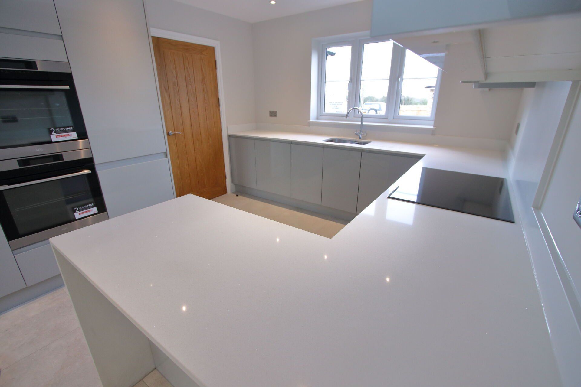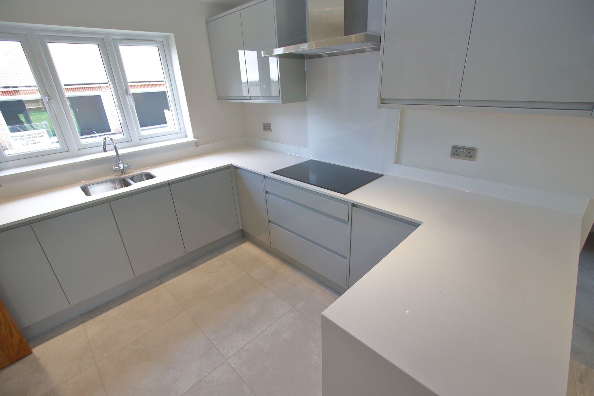 A beautiful four bed detached house, benefitting from two allocated parking spaces and a double garage. Three of the bedrooms are double, with the remaining bedroom being a well-sized single. The master bedroom is perfectly complemented by fitted wardrobes and an en-suite. High quality AEG appliances are installed in the kitchen, and the bathroom accessories are Villeroy, Boch and Grohe. Impeccably finished throughout, the property sets a new bar for quality standards.